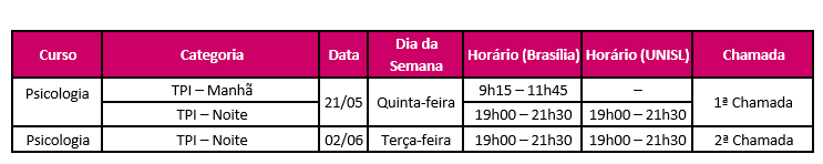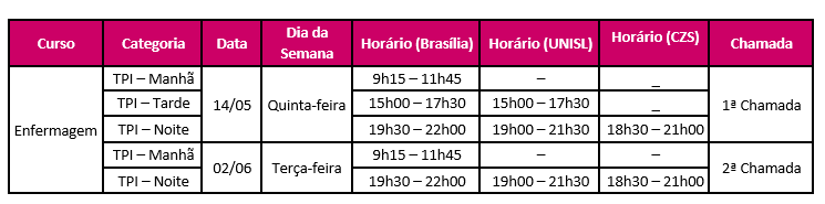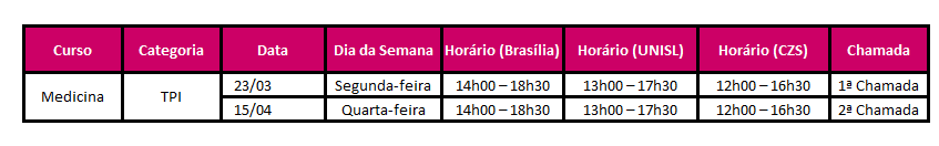 💡 Para o TPI do curso de MEDICINA o horário é o de Brasília. Para os demais cursos, DIREITO, ENFERMAGEM, FISIOTERAPIA, ODONTOLOGIA e PSICOLOGIA o horário é o local.